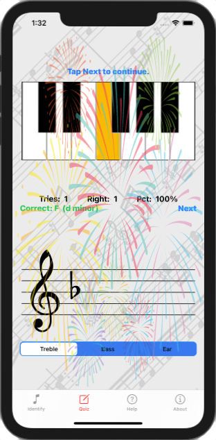 Convert between musical key and musical key signature using the Circle of Fifths. Practice key signature recognition with the Quiz tab. Practice note recognition with the Ear Training option.